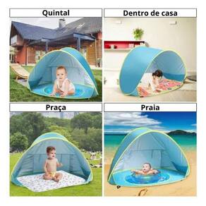 Tenda de praia infantil portátil Azul com mini banheira no centro - toda a diversão dentro e fora de casa, fortaleça a imaginação do seu filho. Com a barraca portátil e com um acabamento leve, é mais fácil de levar para passeios ao ar livre, e ate organizar em sua casa. Capacidade: 1 a 2 crinaçasTamanho: 117 cm 79 cm 70 cmEmbalagem: bolsa de poliéster