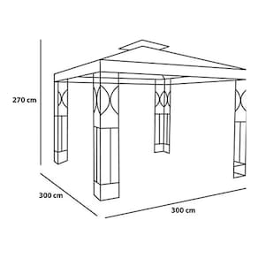 Resumo das caracteristicas e especificacoes: Dimensoes: 275x300x300cm Peso bruto e liquido: 23,000kg Estrutura: Metal Material da cobertura: Poliester Cor: Marrom Uso: Externo Modelo: Pergolas Inclusos: 12 estacas e instrucoes de montagem Caracteristicas: Facil limpeza Recomendacoes: Protecao contra sol e chuva, evitar produtos de limpeza fortes Origem: Importado