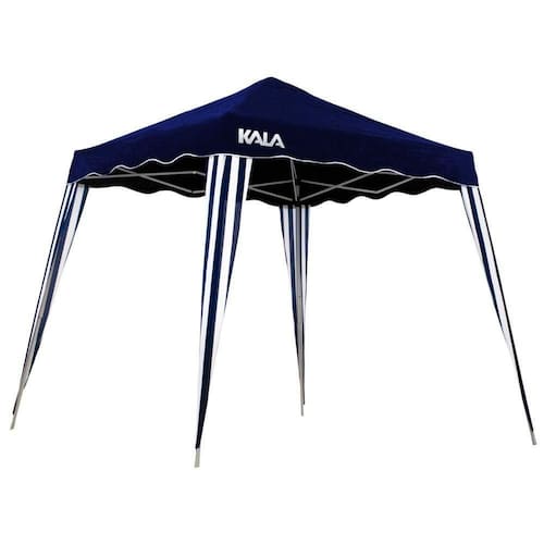 Especificações Dimensões: 300cm x 300cm x 250cm Peso: 14kg Pés: Alumínio Estrutura: Aço carbono com pintura Epóxi Material: 100% Poliéster Oxford Itens Inclusos Tenda Gazebo Dobrável 3x3m Azul Aço Kala Sacola para transporte Ganchos e discos para ancoragem Tirantes para armação Perguntas Frequentes (FAQ) Pergunta: A tenda é resistente à chuva?