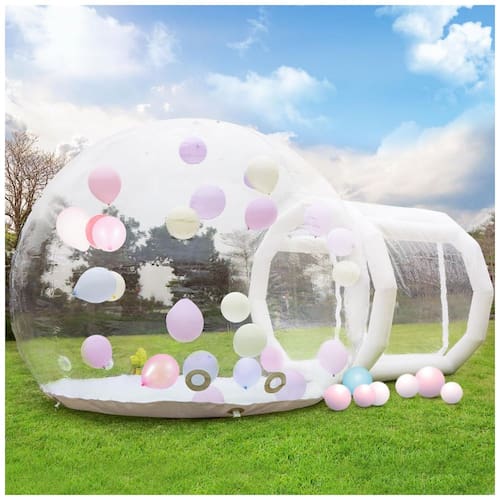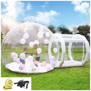 A Tenda Inflável de Bolha da Gaonala é perfeita para festas e eventos diversos! Com um design transparente e versátil, pode ser personalizada para casamentos, aniversários, festas ao ar livre e muito mais. Feita de PVC de alta qualidade, é antitérmico, resistente a rasgos e hermético. O pacote inclui a tenda inflável, um soprador de ar, uma bomba elétrica, um kit de reparo e 100 balões. Fácil de instalar em apenas 5 minutos, proporcionando diversão imediata para as crianças. Com 3 metros de diâmetro e 2,6 metros de altura, a Casa de Bolha é o lugar ideal para os pequenos se exercitarem e gastarem energia extra.