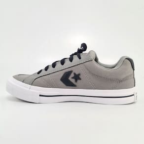 Tênis All Star Converse Cinza Preto Moda Street CasualLindo modelo da converse que combina com o estilo do jovem e do homem que não é acomodado, que está envolvido na mudança do mundo e na evolução. No homem que acredita que o clássico faz parte da moda mais atual e não abre mão daquilo que acredita.Amantes do estilo All Star são homens que entendem a vida com uma visão própria e cheia de identidade.All star com sola reta antiderrapante, possui revestimento emborrachado no bico para maior segurança e resistencia, simbo da converse costurado na lateral externa do pé., palmilha super confort, interior forrado e fofinho, fechamento por cadarço para mehor ajuste.Forma normal para grandinha, não compre maior que o seu pé pois ficara grande.
