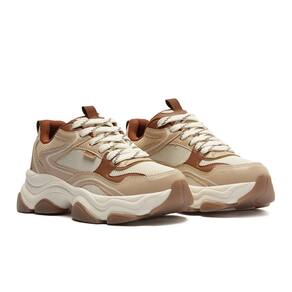 Tênis da Anacapri, em nude, marrom e bege.. Com design de recortes modernos, possui aplicação de peças em napa nos tons de bege e marrom na biqueira, lingueta, laterais e calcanhar, com acabamento em pesponto delicado nos contornos.. O cabedal telado proporciona maior respirabilidade para o tênis.. Com novo solado robusto e tecnológico bege com detalhes em marrom.. Traz puxadores em fita de gorgurão aplicados na lingueta e na parte traseira, facilitando o calce..