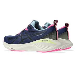 O tênis GEL-CUMULUS 25 TR da coleção NATURE BATHING é inspirado na paleta de cores calmantes de uma floresta. É um tênis versátil para quando sua corrida leva você da estrada para trilhas fáceis. Atualizamos a entressola com nossa nova tecnologia PureGEL e amortecimento FF BLAST PLUS. Esses materiais ajudam a criar aterrissagens mais suaves e uma ponta do pé mais energizada durante o treinamento. Por último, o padrão de piso híbrido da sola torna este calçado funcional para correr em superfícies de asfalto e de trilha.