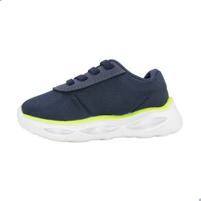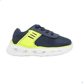 - Design moderno em azul com detalhes em amarelo neon, perfeito para combinar com diversas roupas infantis