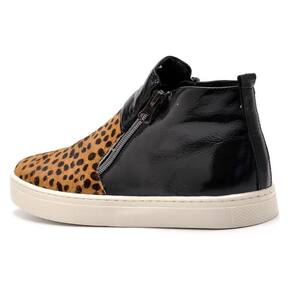 Tenis Bota Casual Feminino Couro Cano Medio Ziper Estampado Palmilha Conforto Academia - 33 - Preto