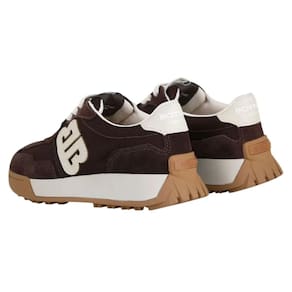 Tênis confeccionado em couro camurça na cor café. Apresenta solado robusto em material de cor natural, proporcionando estabilidade e conforto ao caminhar. O modelo possui fechamento por cadarço, garantindo melhor ajuste aos pés, além de detalhe no calcanhar em couro na cor marfim. Conta ainda com aplicação da letra "B" na lateral, conferindo identidade ao design. Altura do solado: 3 cm proporcionando uma leve elevção, sem abrir mão da estabilidade e conforto.