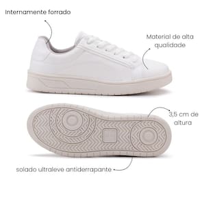 Tenis Branco Feminino Sapatenis Sneakers Confortavel - 34 - Branco