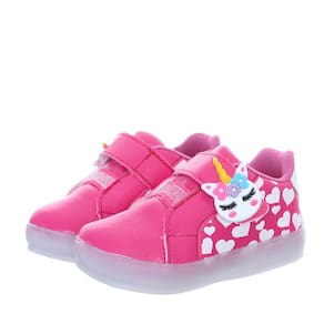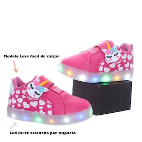 Tenis Calçado com Luz de Led Pisca Unicornio Pink Meninas + Pulseira - 30 - Rosa