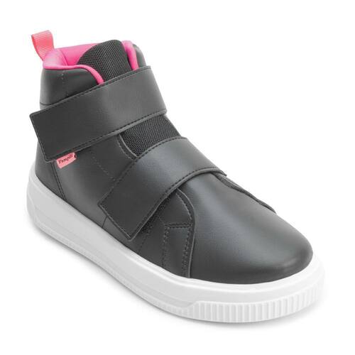Nome: Tênis Cano Médio Infantil Pampili PP24-73800. Gênero: Menina. Indicado Para: Moda-Dia a Dia. Ocasião: Casual. Material Externo: Alternativo. Material Interno: Têxtil acolchoado. Detalhe: Recortes e costuras no cabedal. Fechamento: Tiras fixadoras aderentes. Palmilha: Forrada e macia. Altura do Cano: Médio, 10 cm. Solado: Borracha antiderrapante. Peso do Produto: 860 g (o peso varia de acordo com a numeração). Garantia do Fabricante: Contra defeito de fabricação. Origem: Nacional. Código Produto: 04070273. Marca: Pampili.