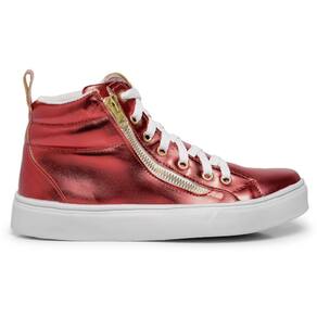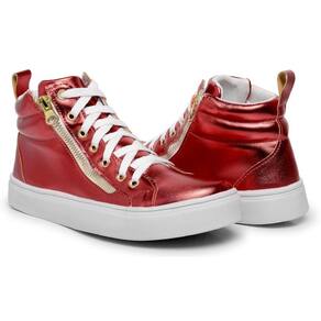 Tênis Cano Médio Metalizado Lk Store Fecho de Cadarço e Zíper - 35 - Vermelho