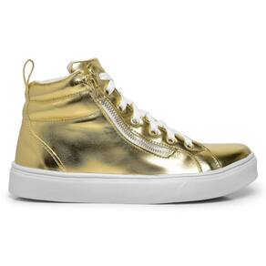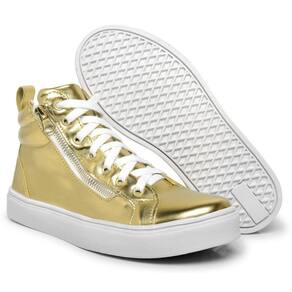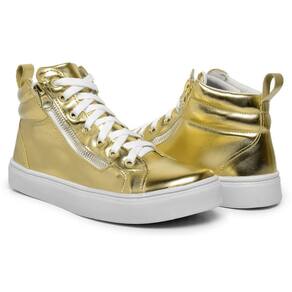 Tênis Cano Médio Metalizado Lk Store Fecho de Cadarço e Zíper - 33 - Amarelo Ouro