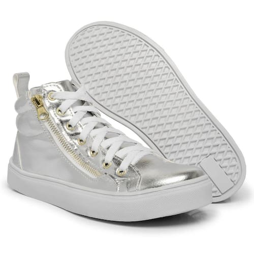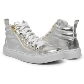 Tênis Cano Médio Metalizado Lk Store Fecho de Cadarço e Zíper - 36 - Prata