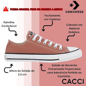 Aderência Segura: O solado de borracha vulcanizada oferece excelente aderência, garantindo estabilidade em diversos tipos de superfície, com o toque clássico do Converse All Star.