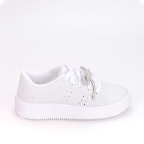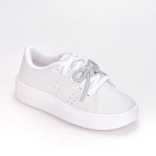 Uma escolha elegante e versátil para o dia a dia. Este tênis robusto vem com um charmoso laço de strass removível, adicionando um toque de brilho e estilo. Com design anatômico, proporciona suporte ideal para os pés em crescimento, enquanto o solado antiderrapante oferece segurança em diversas superfícies. O fechamento em cadarço garante um ajuste firme e personalizado. Perfeito para combinar com diversos looks, mantendo as meninas confortáveis e na moda.