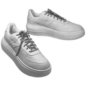 A sola do tênis é projetada para ser flexível, proporcionando facilidade de movimento e naturalidade ao caminhar. A sola metalizada não apenas adiciona um elemento estiloso, mas também contribui para a durabilidade do tênis.