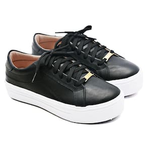Tênis Casual Feminino Confort em Couro Preto Polo Urban - 40 - Preto
