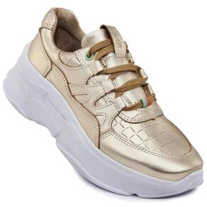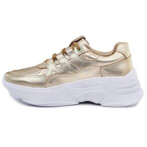 Tênis Casual Feminino Couro Metalizado Flatforme Moderno - 35 - Amarelo Ouro