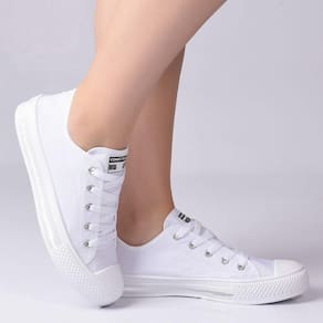 - Cabedal feito com material lona - Altura média do cano 12,5cm. - Solado feito com emborrachado pvc - Palmilha feita de eva de 3mm forrado - Lado interno com dois ilhos, para melhor respiração dos pés