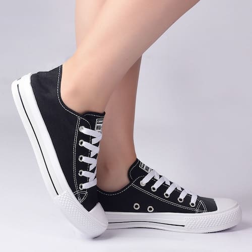 - Cabedal feito com material lona