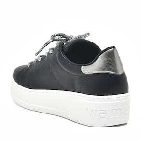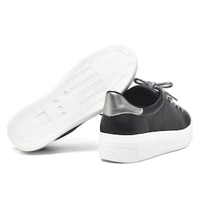 Casual não precisa significar comum. Mantenha o visual despojado, mas mude com o estilo atual deste tênis flatform com cadarço com brilho. O cabedal em napa com detalhe metalizado na parte de trás deixam seus pés confortáveis e estilosos para enfrentar o que o dia trouxer pela frente. Forma padrão com fecho de cadarço e detalhes nas costuras. Entressola de PVC e solado de borracha.