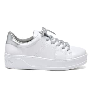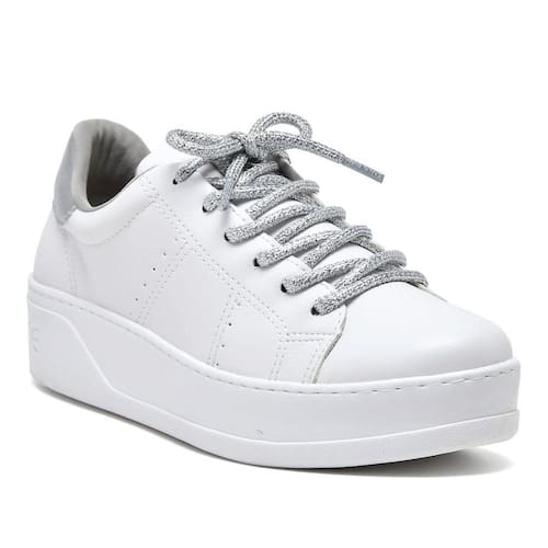 Casual não precisa significar comum. Mantenha o visual despojado, mas mude com o estilo atual deste tênis flatform com cadarço com brilho. O cabedal em napa com detalhe metalizado na parte de trás deixam seus pés confortáveis e estilosos para enfrentar o que o dia trouxer pela frente. Forma padrão com fecho de cadarço e detalhes nas costuras. Entressola de PVC e solado de borracha.