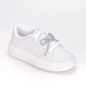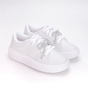 Tênis Casual Infantil Feminino Kidy Laço de Strass Branco - 30 - Branco