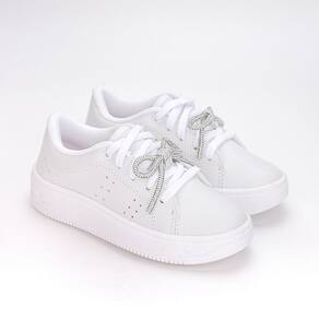Tênis Casual Infantil Feminino Kidy Laço de Strass Branco - 31 - Branco