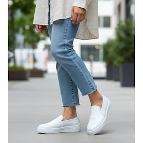 Tênis Casual Feminino Slip On Iate Sapatênis em Couro Branco Enfermagem, possui sola flatform branca antiderapante e é perfeito para looks casuais e dias que pedem muito conforto, possuí forro interno cacharrel.