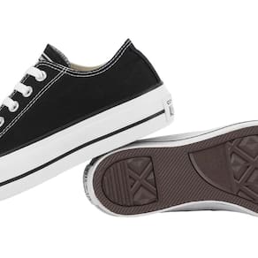 Confeccionada com tecido canvas de algodão tipo lona. O tradicional construído sobre um solado de salto plataforma com aproximadamente 4 cm de altura (podendo variar conforme o tamanho do tênis). Os ilhoses prateados contrastam com o cabedal, incluindo os dois laterais que facilitam a transpiração dos pés. O logo Converse All Star aparecem aplicados na língua e calcanhar. O solado e a vira de borracha, proporcionam a aderência ao caminhar.