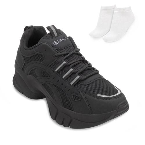 Nome: Tênis Chunky Sneakers Ramarim e Meia RM24-2480231. Gênero: Feminino. Indicado Para: Dia a dia. Estilo da Peça: Casual. Material Externo: Alternativo/Têxtil. Material Interno: Têxtil. Detalhe: Recortes e costuras por todo cabedal. Ajuste: Cadarço. Palmilha: EVA, forrada e macia com Tecnologia Flyeasy. Altura do Solado: Robusto com 5 cm. Solado: Borracha antiderrapante. Peso do Produto: 1.116 kg (o peso varia de acordo com a numeração). Garantia do Fabricante: Contra defeito de fabricação. Origem: Nacional. Código Produto: 02024774. Marca: Ramarim. Acompanha um par de meias tamanho 33 ao 38. Composição: 83 % Algodão. 12 % Poliéster. 05 % Elastodieno.
