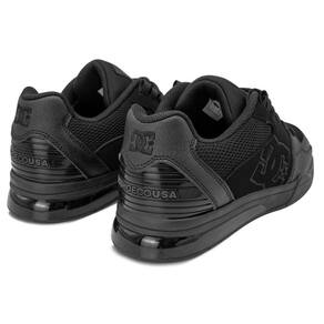 Tênis DC Shoes com colarinho acolchoado com espuma e língua para maior conforto, cintas de centragem da língua, forro em mesh para maior conforto, logo do trimestre TPR injetado, forro de meia em EVA, sola de borracha pegajosa resistente à abrasão, banda de rodagem padrão de pilula, marca registrada da DC e etiquetas personalizadas