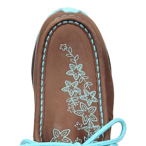 Tênis feminino Cow Way fabricado em couro na cor Marrom, possui cano curto, bico redondo com costura na parte superior, bordados no peito do pé e na lateral, detalhes na cor Azul e solado de EVA.