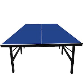 DIMENSÕES (A x L x C): 0.76m x 1.52m x 2.74m Tênis de mesa com campo de jogo confeccionado em MDP de 18 mm de espessura e com acabamento em primer azul e linhas demarcatórias na cor branca, possui pés dobráveis em madeira maciça e medidas oficiais que atendem aos padrões da ITTF (International Table Tennis Federation).