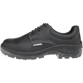 Sapato de segurança, confeccionado 100% em couro, colarinho soft acolchoado e fechamento em cadarço com biqueira de polipropileno. Palmilha de montagem em poliéster resinado e solado isolante em pu bidensidade injetado diretamente no cabedal com sistema de absorção de impacto.