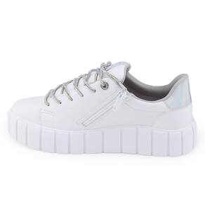 Tênis Via Marte 23-10910 é um modelo Casual para compôr diversos looks. Seu cabedal é fabricado em material sintético com acabamento em costuras além de lindos detalhes como o reforço de calcanhar furtacor e o cadarço todo em brilho, o modelo é todo forrado internamente proporcionando conforto e com fechamento por zíper lateral para facilitar o calçe. Sua palmilha interna é removível, macia e revestida em material têxtil apresentando a logo da marca. O solado flatform branco, possui 4,5cm de altura traseiro e 4cm de altura frontal, é confortável e traz segurança ao caminhar. Seu solado possui frisos para maior segurança.