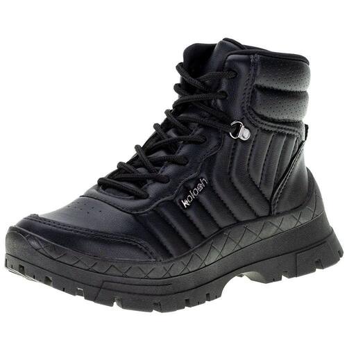 A Bota Feminina Coturno Kolosh é confeccionada em Napa com acabamento em costura, fechamento cadarço, palmilha em espuma e solado em borracha antiderrapante com salto de cinco centímetros. O cano mede doze centímetros de altura por trinta centímetros de circunferência.