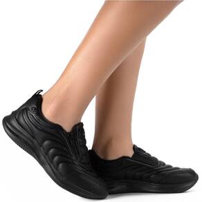 Com superfície sem costuras, moldada pela tecnologia Frequency, e detalhes em microfuros nas laterais, o calçado garante respirabilidade e conforto térmico. Seu sistema de calce fácil, com zíper funcional e elástico, proporciona ajuste perfeito e otimiza o tempo de colocação. A sola de EVAFit com 4,5 cm de altura oferece excelente absorção de impacto e propulsão de movimento, enquanto a palmilha em EVA garante leveza e conforto ao longo do dia.