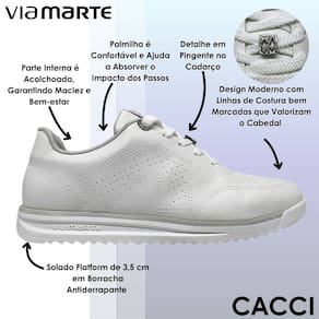 Esse tênis da Via Marte foi pensado para unir estilo e conforto em um único calçado. Ele apresenta um design moderno com linhas de costura bem marcadas que valorizam o cabedal e deixam o visual mais sofisticado. O detalhe metálico com o logo da marca na lateral é um charme à parte, trazendo identidade e elegância, ideal para quem gosta de um toque fashion em combinações casuais.