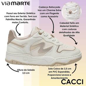 O cabedal apresenta acabamento de alto padrão com costuras bem definidas e materiais cuidadosamente selecionados, garantindo durabilidade e um toque de sofisticação. O cadarço reforçado traz um detalhe especial com um discreto acessório metálico, acrescentando charme ao visual sem perder a discrição. Por dentro, o forro em tecido contribui para uma sensação confortável ao longo do dia, enquanto a palmilha acolchoada proporciona maciez em cada pisada.
