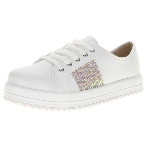 O Tênis Feminino Beira Rio é confeccionado em Napa Turim com aplicação em strass, acabamento em costura, fechamento por cadarço de amarração, palmilha em PU e solado em borracha antiderrapante.
