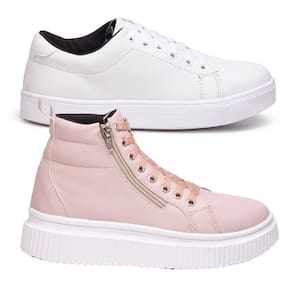 Tênis Feminino Branco Casual + Botinha Rosa Para Um Mix De Estilo Urbano E Feminino. - 35 - Branco