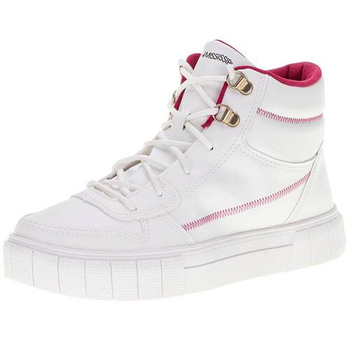 O Tênis Feminino Cano Alto Mississipi é confeccionado em material de alta qualidade com acabamento em costura, fechamento por cadarço de amarração, forro interno em têxtil, palmilha em EVA e solado em borracha antiderrapante.