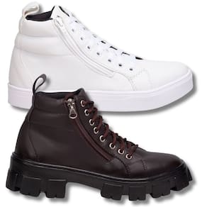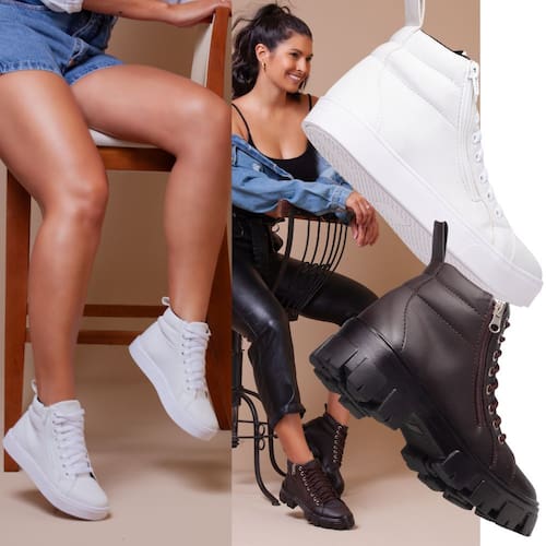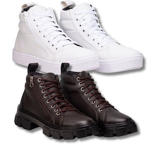 Tênis Feminino Cano Alto Para Um Toque Urbano + Coturno Marrom Tratorado Para Um Estilo Robusto. - Branco - 38