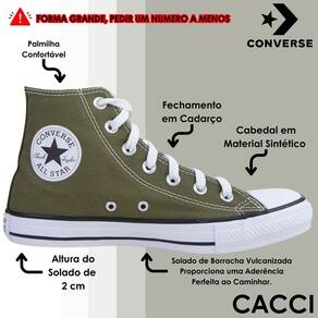 Na sua versão em cores sazonais, o icônico Chuck Taylor All Star mantém seu estilo atemporal com um toque renovado. Confeccionado em tecido canvas de algodão tipo lona, oferece durabilidade com costuras duplas no cabedal, garantindo resistência para o dia a dia. Os ilhoses laterais proporcionam ventilação adequada, enquanto o forro interno acolchoado eleva o conforto a cada uso. O clássico logo Converse All Star aparece tanto na heeltab do calcanhar quanto na tag da língua, reforçando sua autenticidade. Para completar, o solado de borracha vulcanizada assegura aderência e estabilidade em cada passo, tornando este modelo indispensável para quem busca estilo e versatilidade.