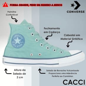 Na sua versão com uma combinação de cores sazonais, o clássico Chuck Taylor All Star ganha um visual renovado sem perder sua essência. Confeccionado em tecido de algodão tipo lona, oferece durabilidade e resistência com costuras duplas no cabedal. Para garantir conforto ao longo do dia, conta com forro interno acolchoado e ilhoses laterais que proporcionam uma ventilação eficiente para os pés. O icônico Patch Logo Converse Chuck Taylor All Star aparece na parte interna dos canos com um efeito degradê, adicionando um toque moderno ao design, enquanto o logo Converse All Star está posicionado na parte traseira da entressola. Finalizando com o solado de borracha vulcanizada, este modelo proporciona aderência e estabilidade a cada passo, combinando estilo e funcionalidade para qualquer ocasião.