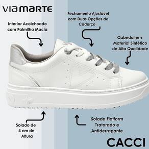 O design moderno é cuidadosamente elaborado, com costuras detalhadas que garantem um charme diferenciado. Trazendo a versatilidade das duas opções de cadarço, em branco e prata. Sua parte traseira com detalhes prateados o transforma com um estilo sofisticado.