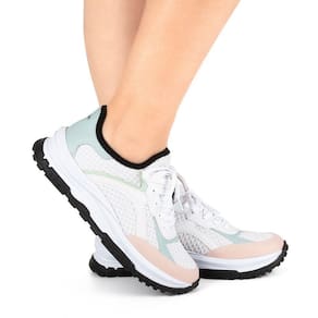 * Cabedal confeccionado em sintético e têxtil;* Interior é em têxtil;* Palmilha em EVA e têxtil, permite ser removida para facilitar a higienização;* Lingueta integrada ao cabedal;* Modelo calce fácil;* Ajuste por cadarço;* Bico redondo;* Solado de PVC expandido;* Altura do salto 4cm.