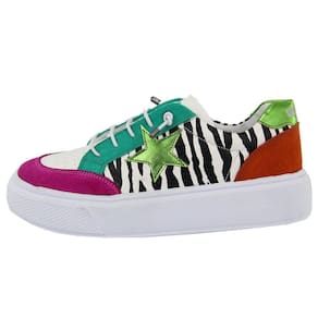 Tenis Feminino Casual Camurça Fechamento Cadarço Animal Print Zebra Palmilha Gel Macia Dia a Dia - 37 - Verde