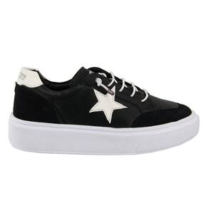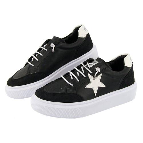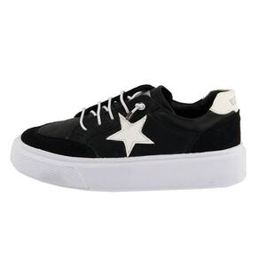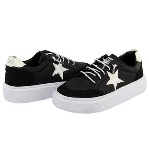 Tenis Feminino Casual Camurça Fechamento Cadarço Aplicaçao Estrela Palmilha Gel Macia Dia a Dia - 38 - Preto