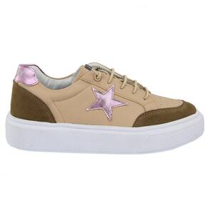Tenis Feminino Casual Camurça Fechamento Cadarço Aplicaçao Estrela Palmilha Gel Macia Dia a Dia - 37 - Bege